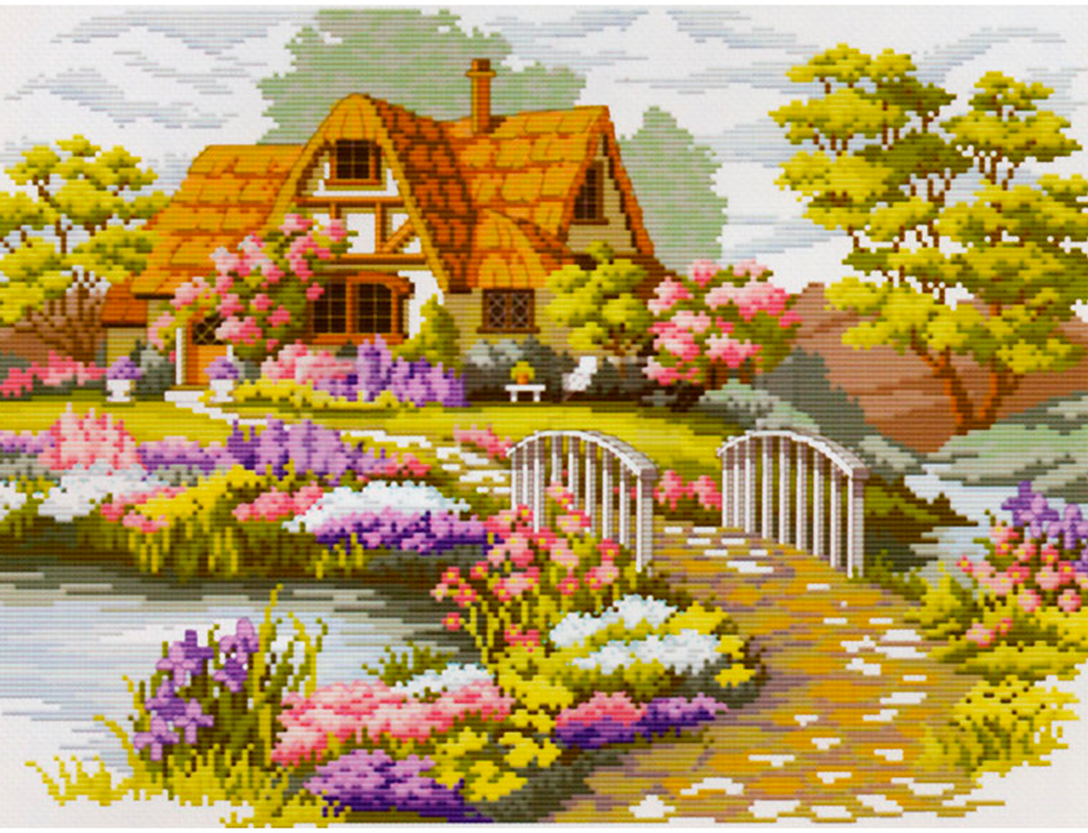 Купить Набор для вышивания крестом Белоснежка "Мостик в цветах" / Набор для вышивания 37х28.5 см / Дом / Природа
