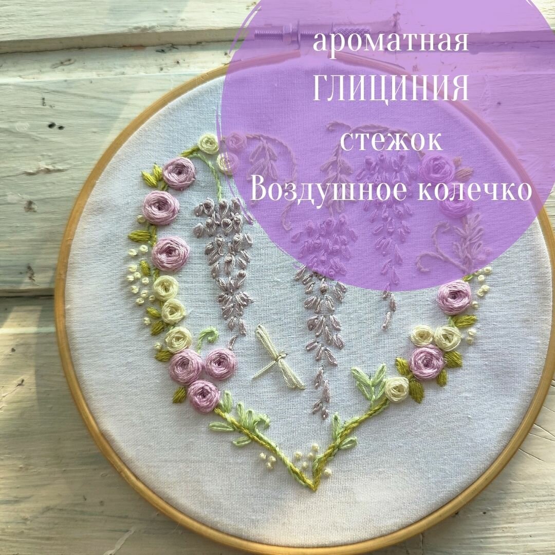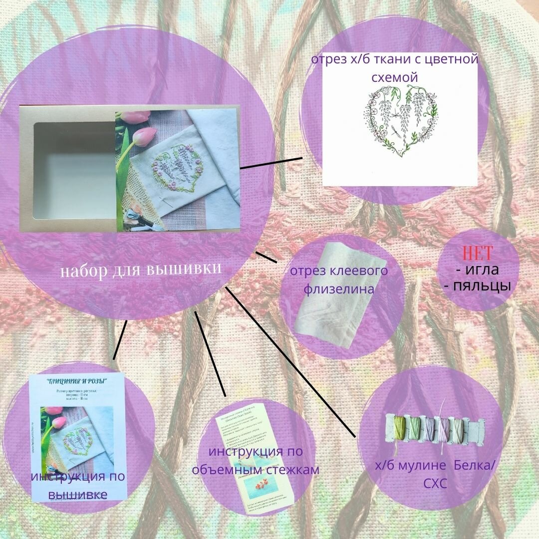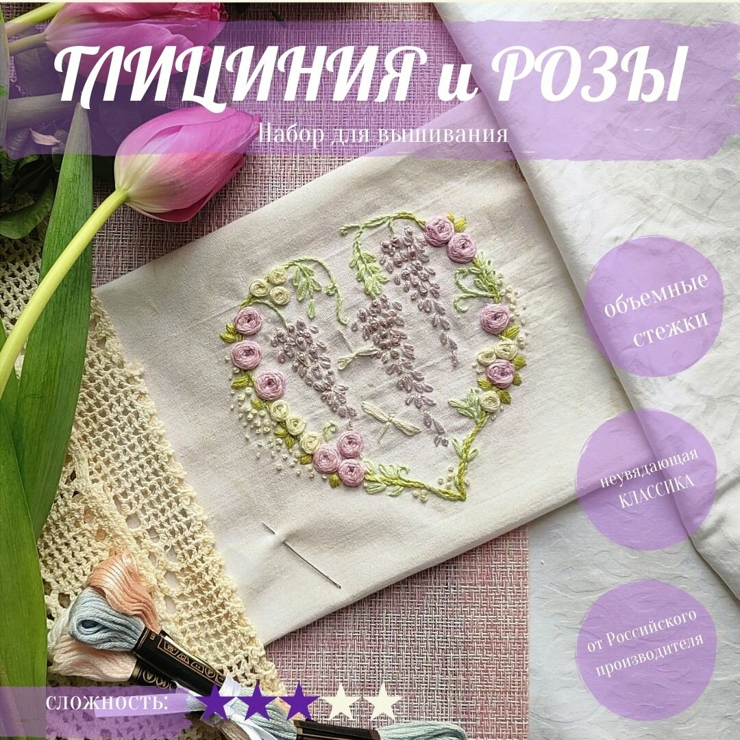 Набор для мини вышивки Глициния и Розы/ Цветочное сердечко 11х11см / Рукоделие в винтажном стиле интересное: