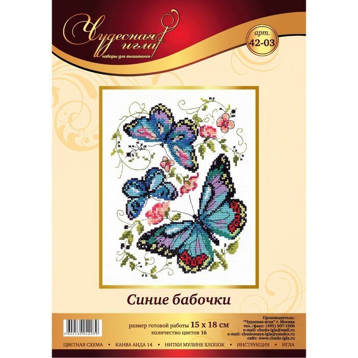 Набор для вышивания Чудесная Игла 42-03 «Синие бабочки» 15*18см интересное: