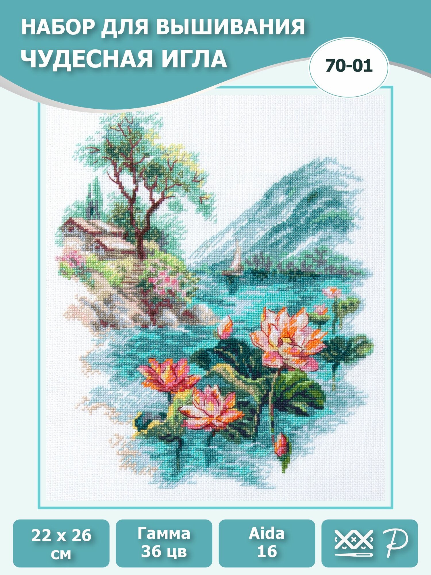70-01 "Цветущие лотосы". Набор для вышивания крестом Чудесная игла 22 х 26 см. интересное: