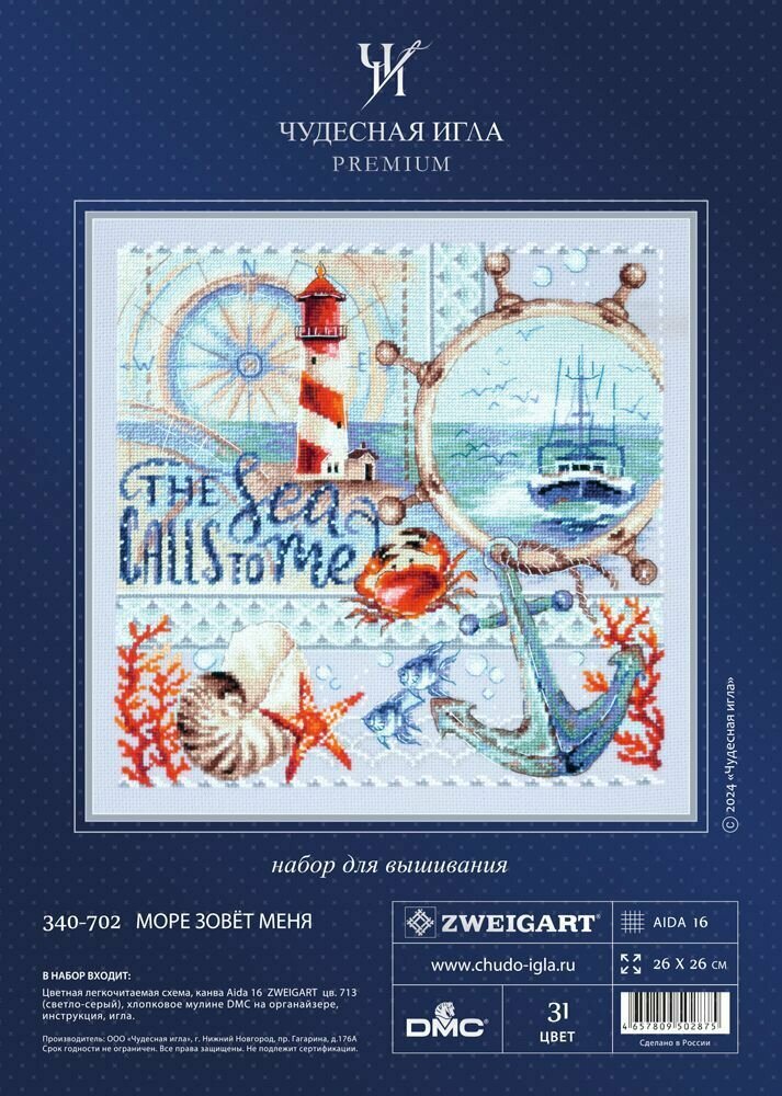 340-702 "Море зовёт меня" Набор для вышивания крестом Чудесная игла PREMIUM 26 х 26 см. интересное: