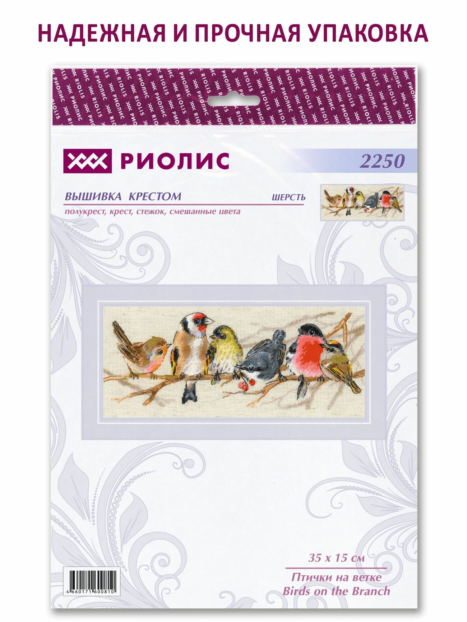 Набор для вышивания крестом Риолис, вышивка крестиком "Птички на ветке", 35*15см, 2250 интересное: