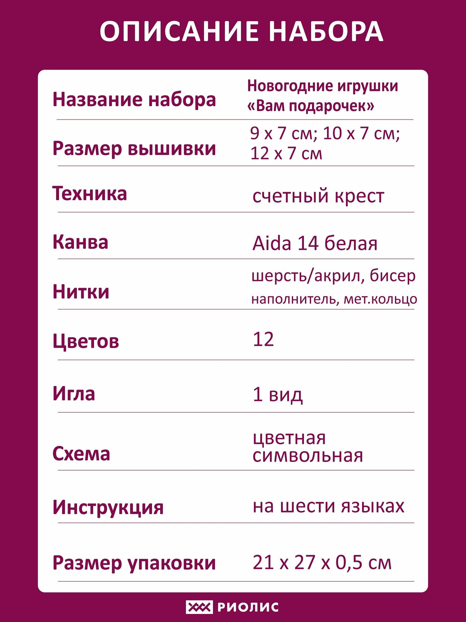 Набор для вышивания крестом Риолис, вышивка крестиком Новогодние игрушки "Вам подарочек", 9*7 см, 10*7 см, 12*7 см, 2153АС интересное: