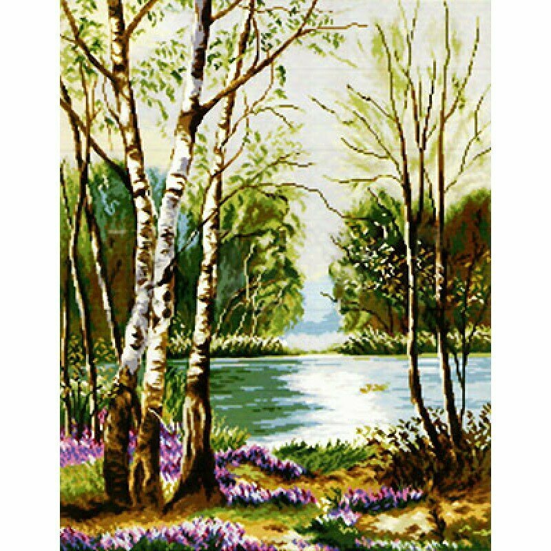 Купить Набор для вышивания крестиком Белоснежка "Половодье" / Набор для вышивания 38.5х49 см / Природа / Берёзы / Река