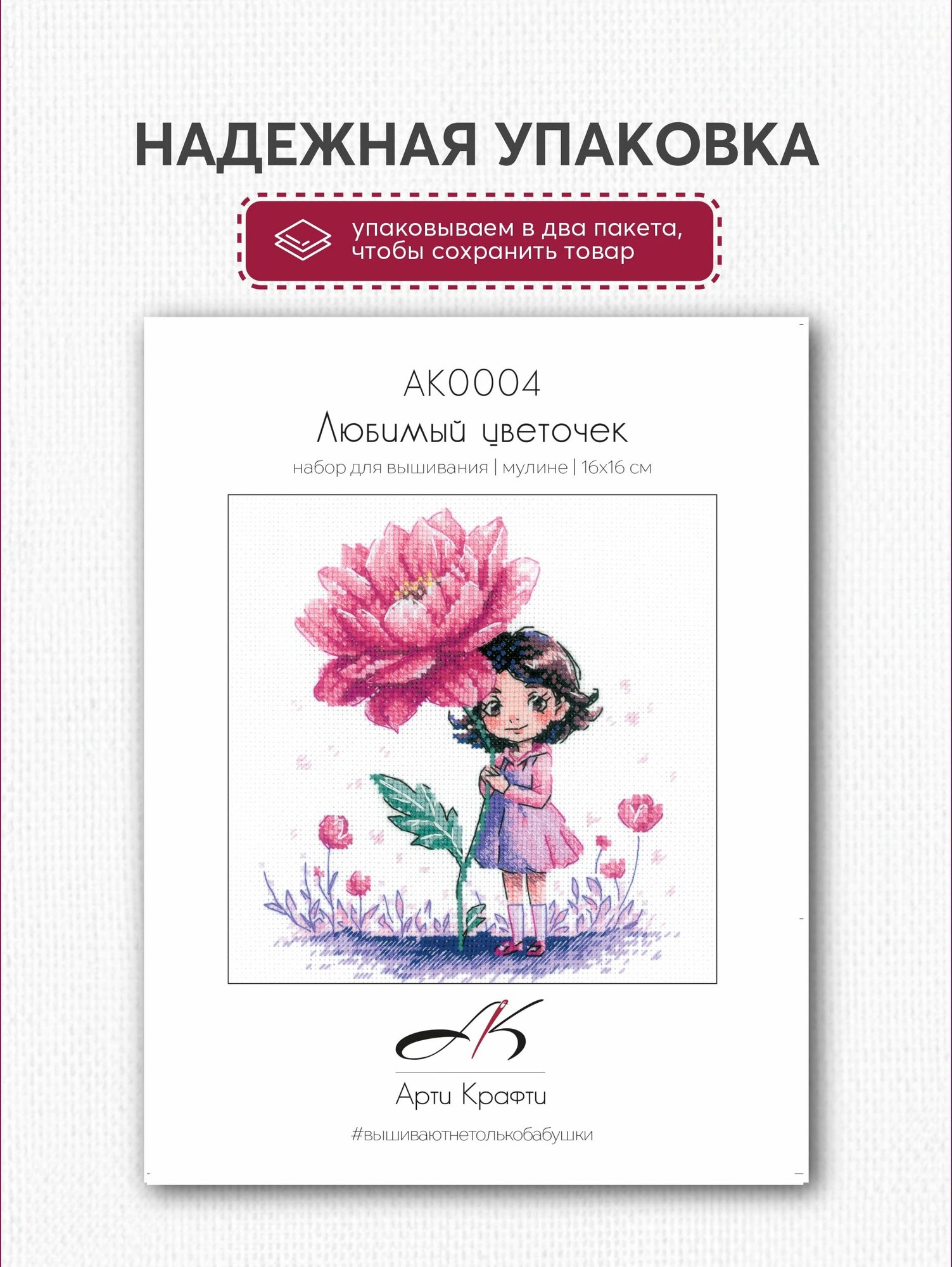 Набор для вышивания крестом Арти Крафти, вышивка крестиком "Любимый цветочек", 16*16см, АК0004 интересное: