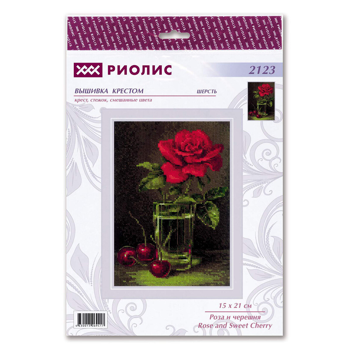 Купить Набор для вышивания крестом Риолис, вышивка крестиком "Роза и черешня", 15*21 см, 2123