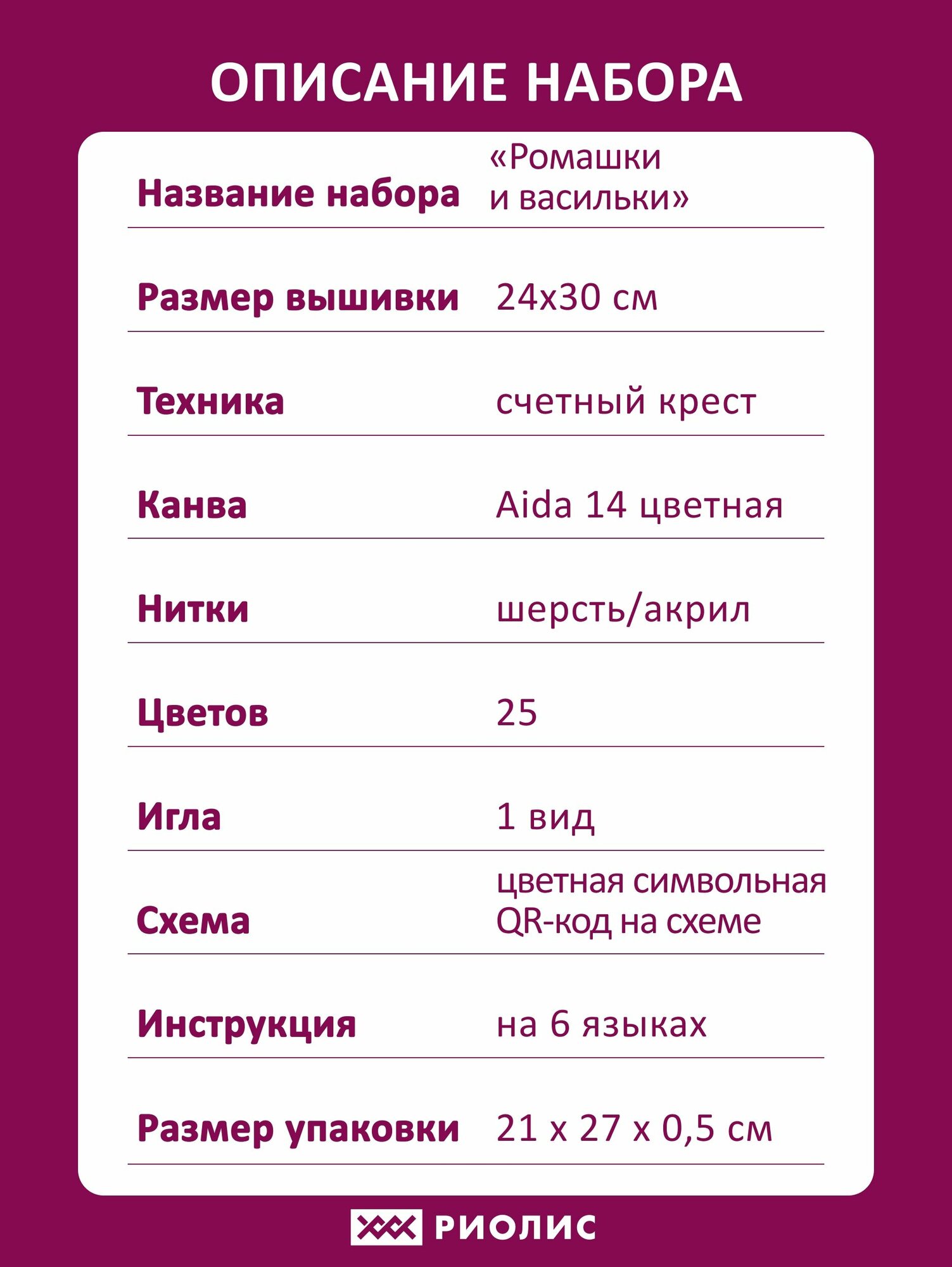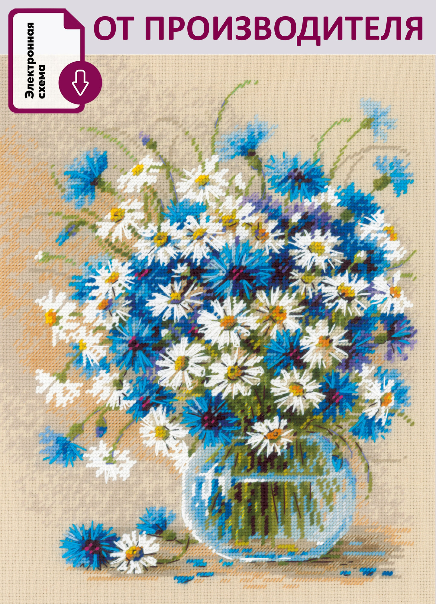 Набор для вышивания крестом Риолис, вышивка крестиком "Ромашки и васильки", 24*30 см, 2249 интересное: