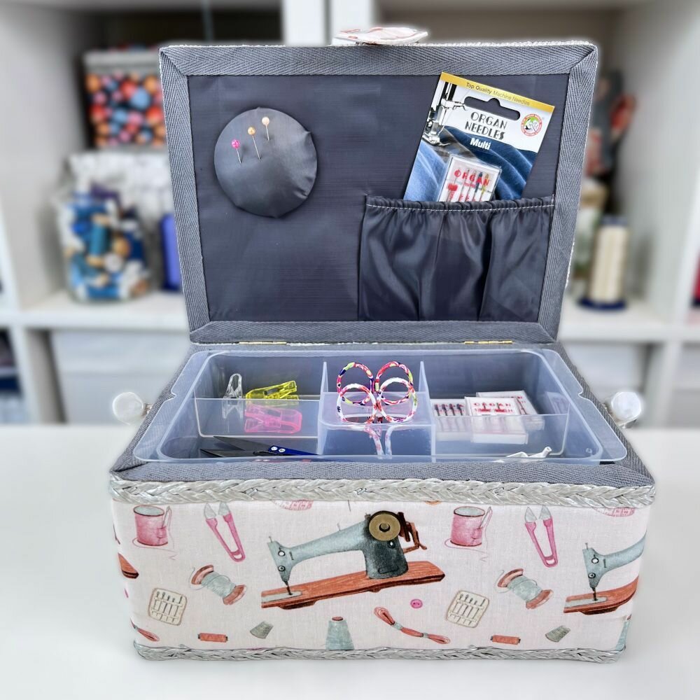 Купить Шкатулка для рукоделия и шитья "Рукодельница" (розовая) с органайзером