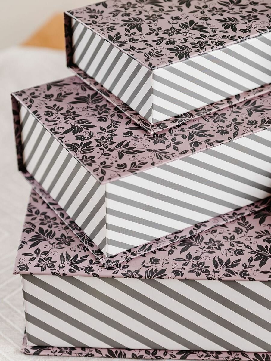Купить Коробка для хранения украшений, мелочей и аксессуаров большая, 250 x 200 x 80 мм. "Цветы/полоски", розовый