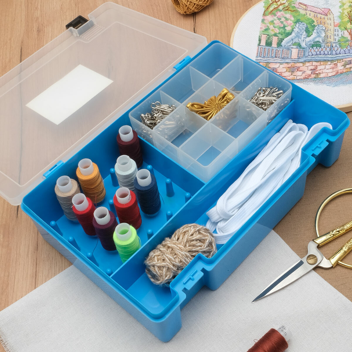 Купить Органайзер для ниток и рукоделия TRIVOL тип-8, пластик (голубой) 27,4*18,8*6,5 см