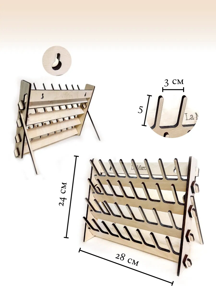 Ниже Вы можете прочитать отзывы на Деревянный органайзер "Ниточница", для ниток на 32 катушки, навесной, настольный, ознакомится с подробными характеристиками, посмотреть интересные обзоры и фотографии на Деревянный органайзер "Ниточница", для ниток на 32 катушки, навесной, настольный.