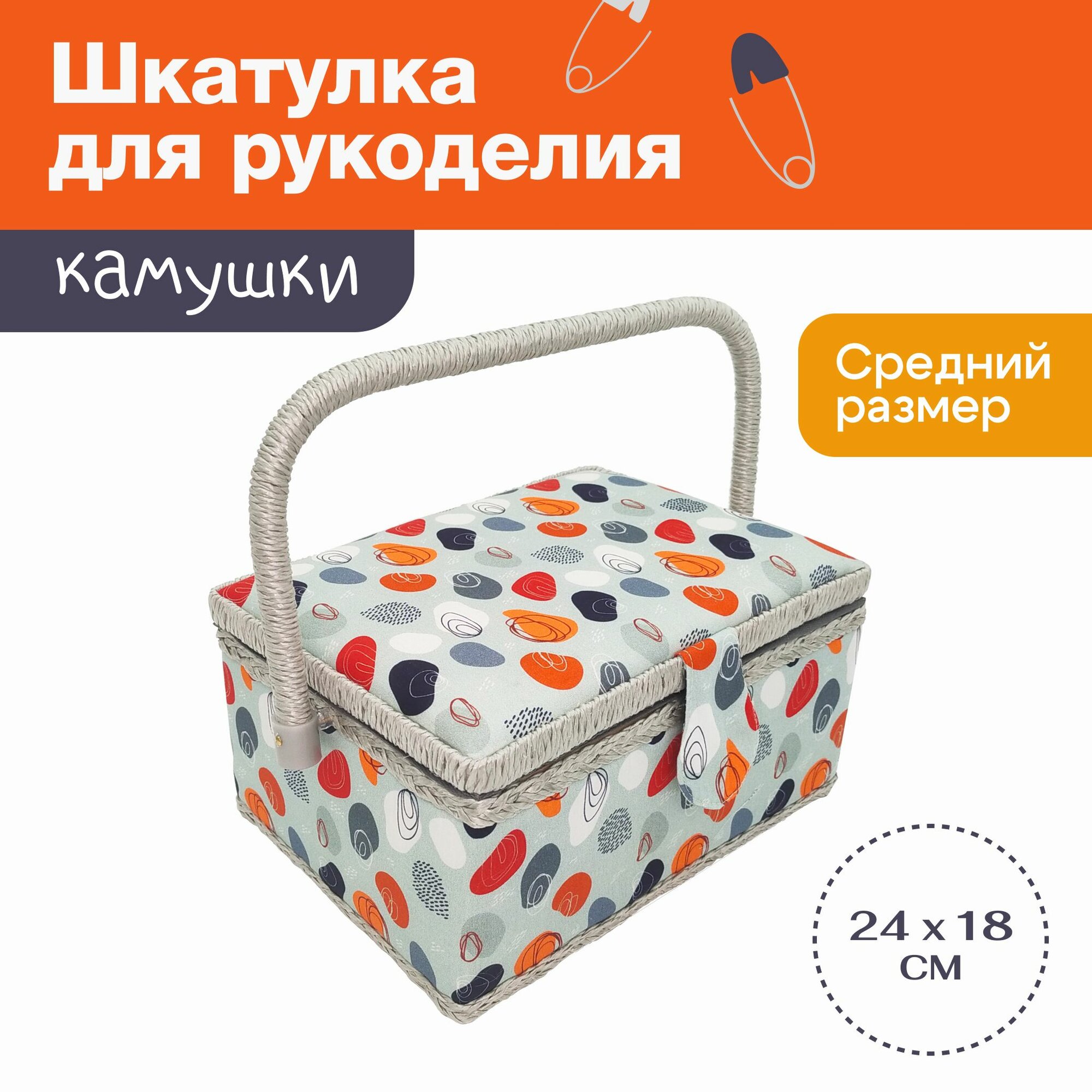 Шкатулка для рукоделия и шитья "Камушки" с органайзером интересное: