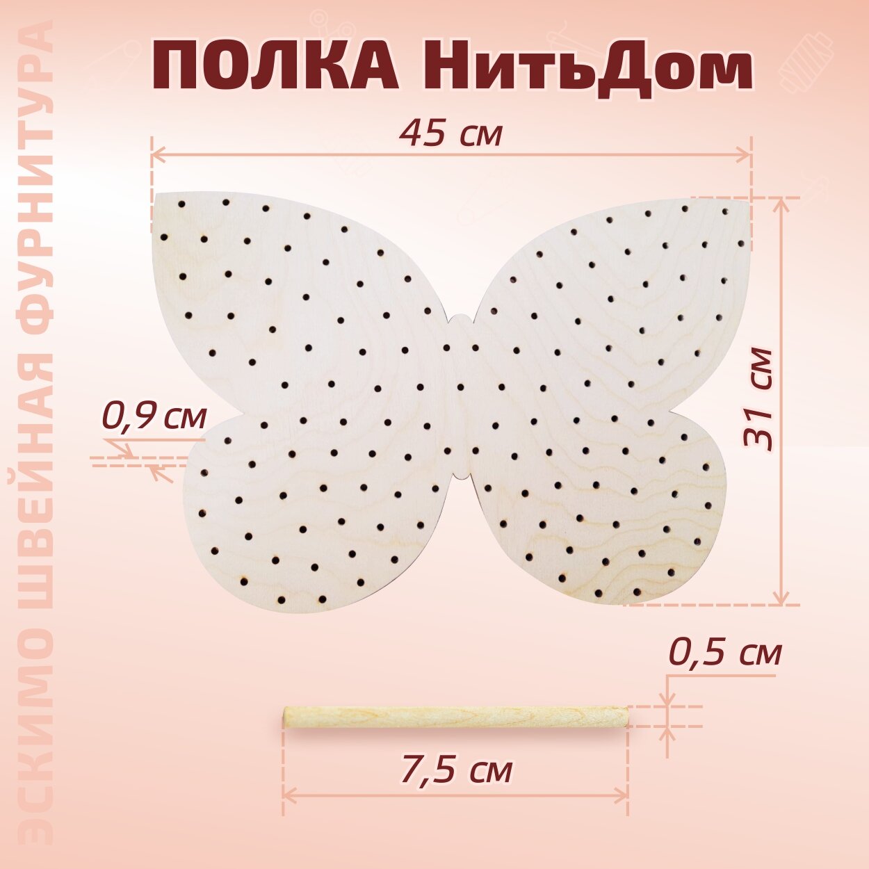 Настенный держатель для бобин, 50 штырей, Полка НитьДом Бабочка