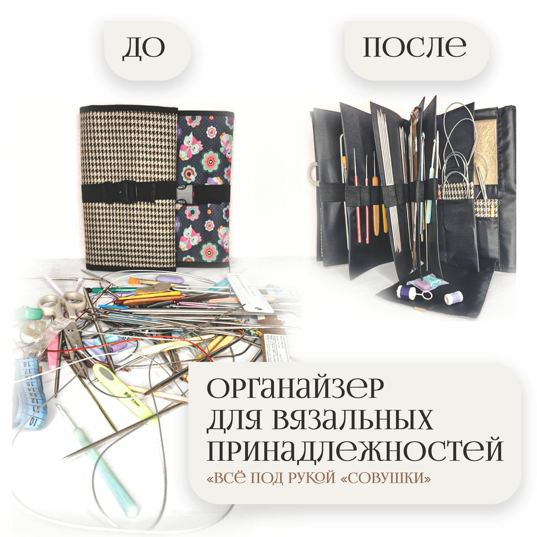 Органайзер для рукоделия спиц крючков вязальных принадлежностей Всё под рукой Совушки интересное: