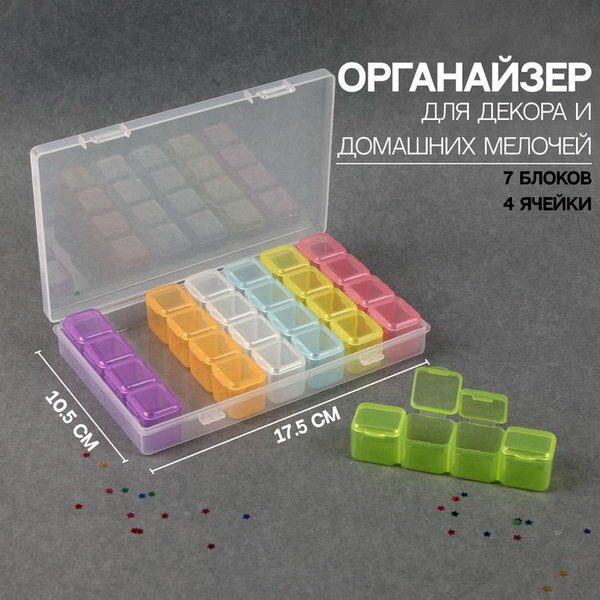 Органайзер для хранения мелочей, 28 ячеек, 17.5x10.5x2.5 см, разноцветный интересное: