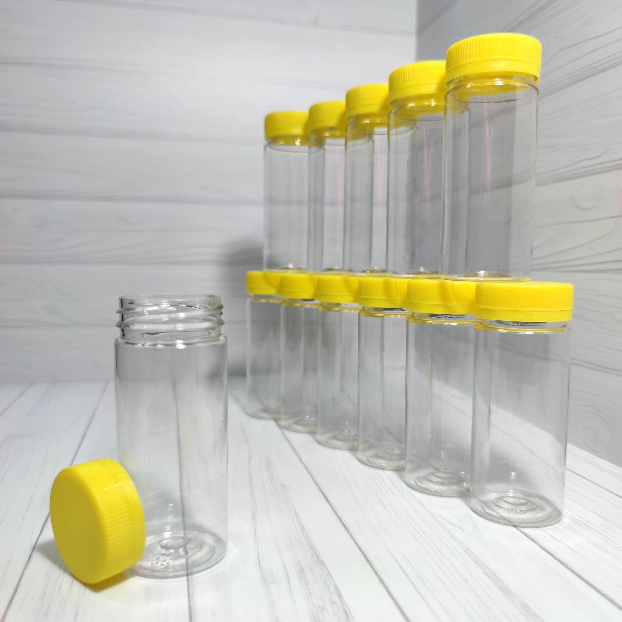 Баночки пластиковые для хранения с жёлтой крышкой - 100 мл - 12 шт интересное: