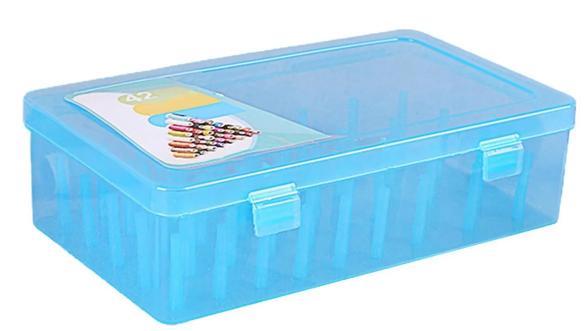 Купить Органайзер (бокс) для хранения ниток, прозрачный (42 стойки) голубой