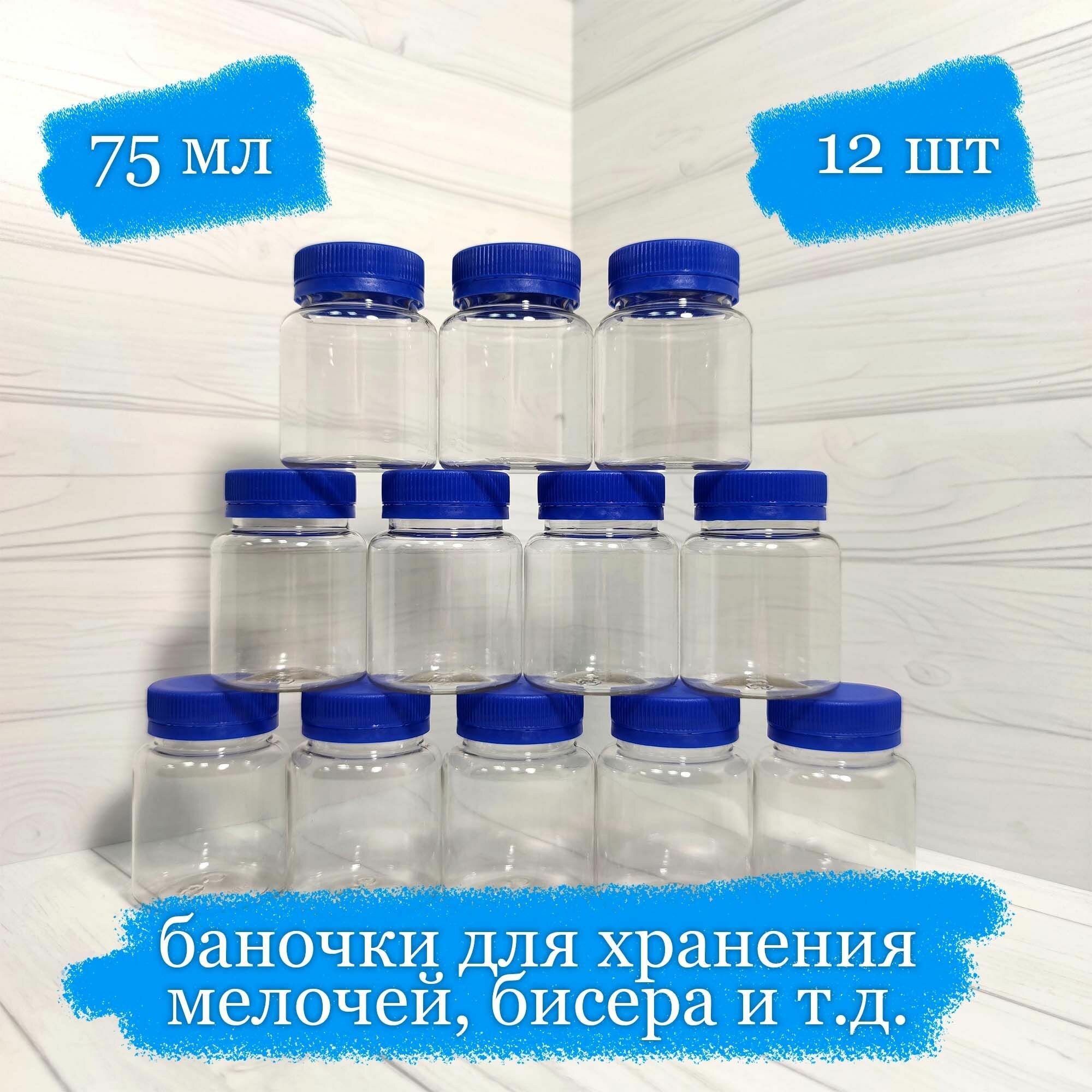 Баночки пластиковые для хранения с синей крышкой - 75 мл - 12 шт интересное:
