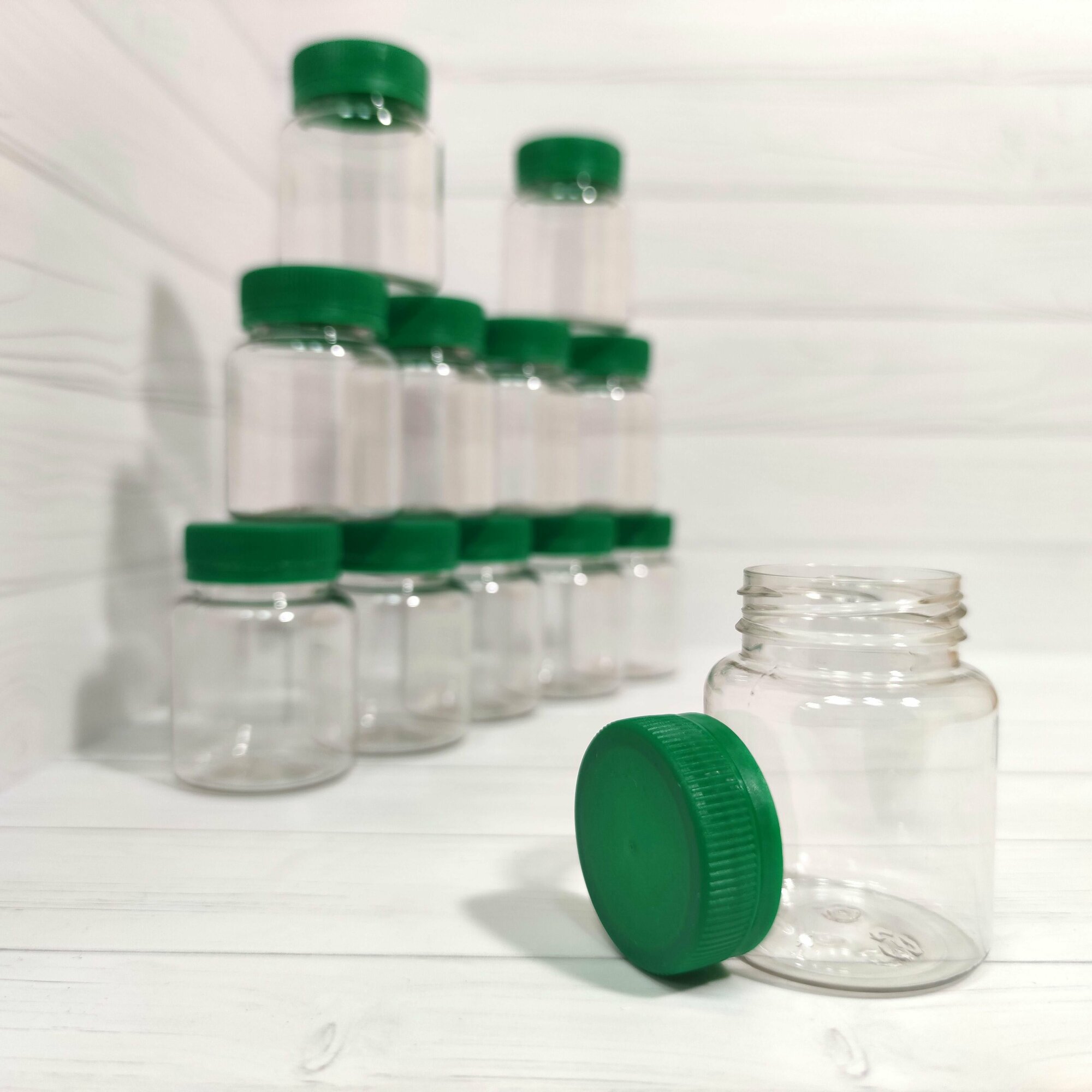 Баночки пластиковые для хранения с зелёной крышкой - 75 мл - 12 шт интересное: