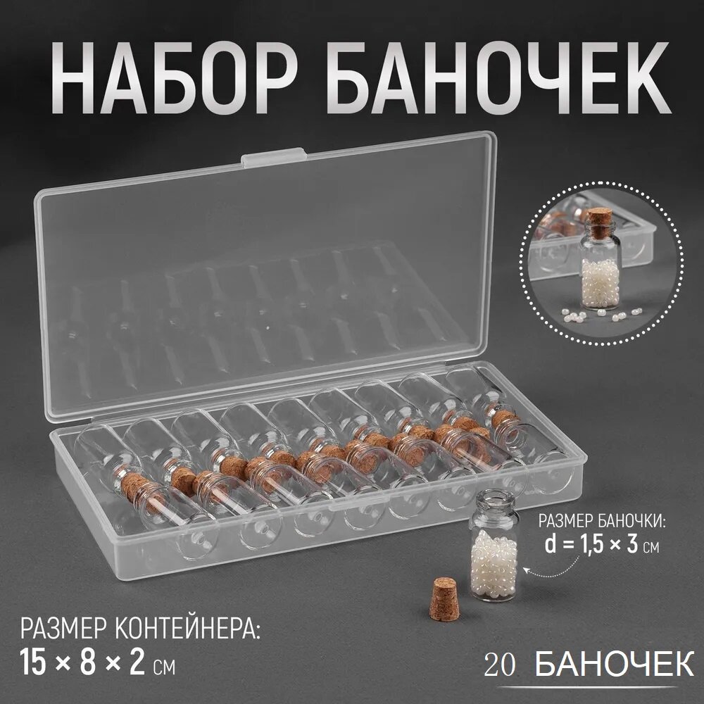 Набор баночек для хранения мелочей, d = 1,5 × 3 см, 20 шт, в контейнере, 15 × 8 × 2 см, 3782835 интересное: