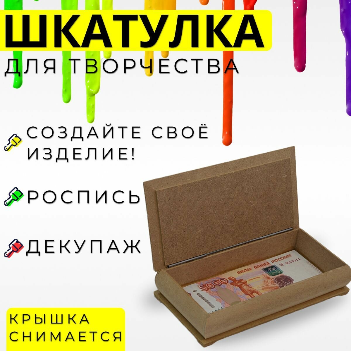 Шкатулка для творчества 10.5х7.7см / Фигурная шкатулка под роспись