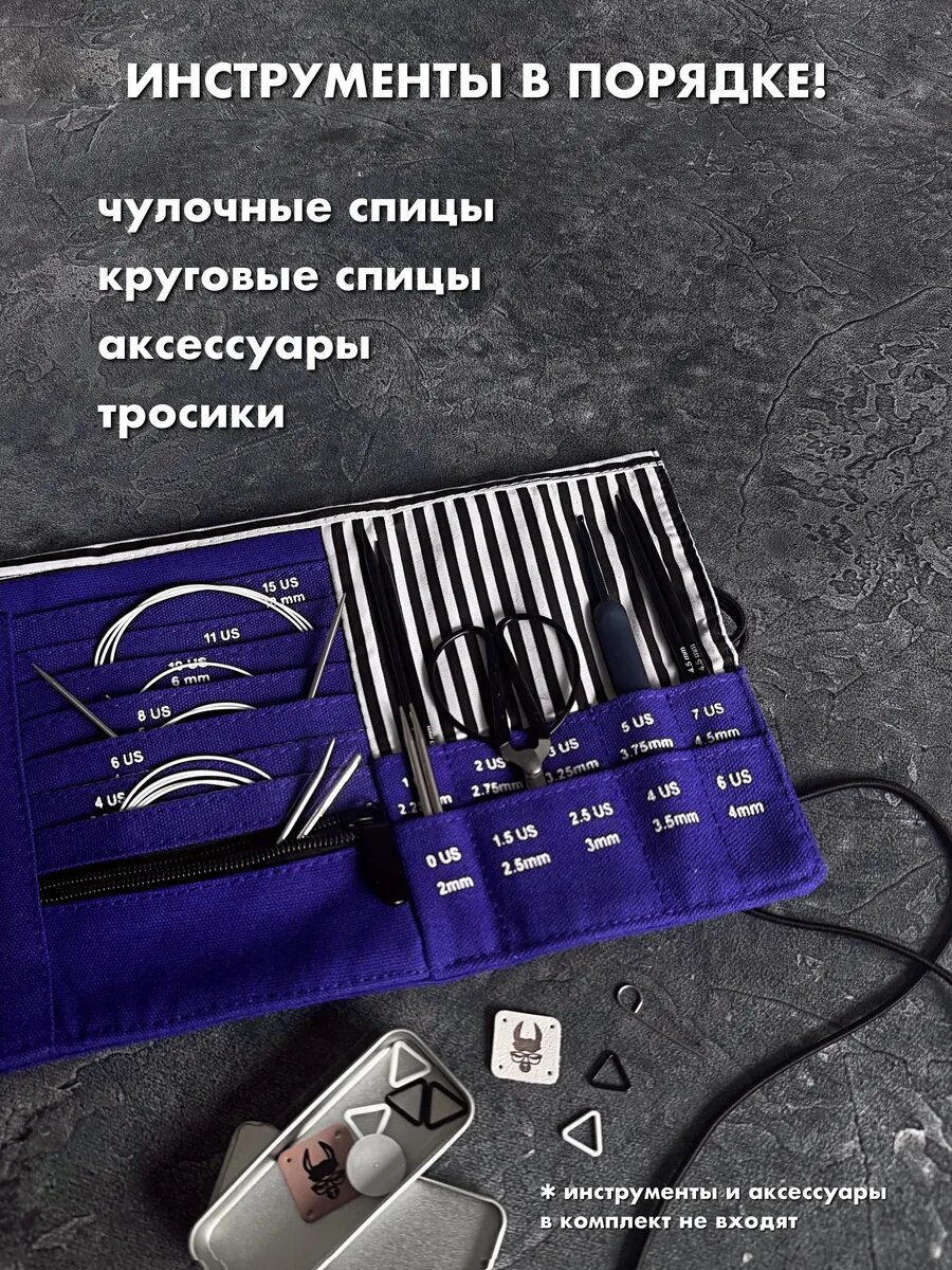 Органайзер для вязания, чехол для спиц/крючков/аксессуаров, текстиль, сине-фиолетовый, TWEEDYSHOP интересное: