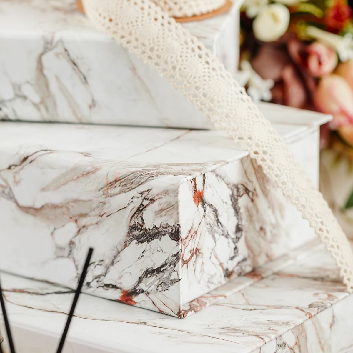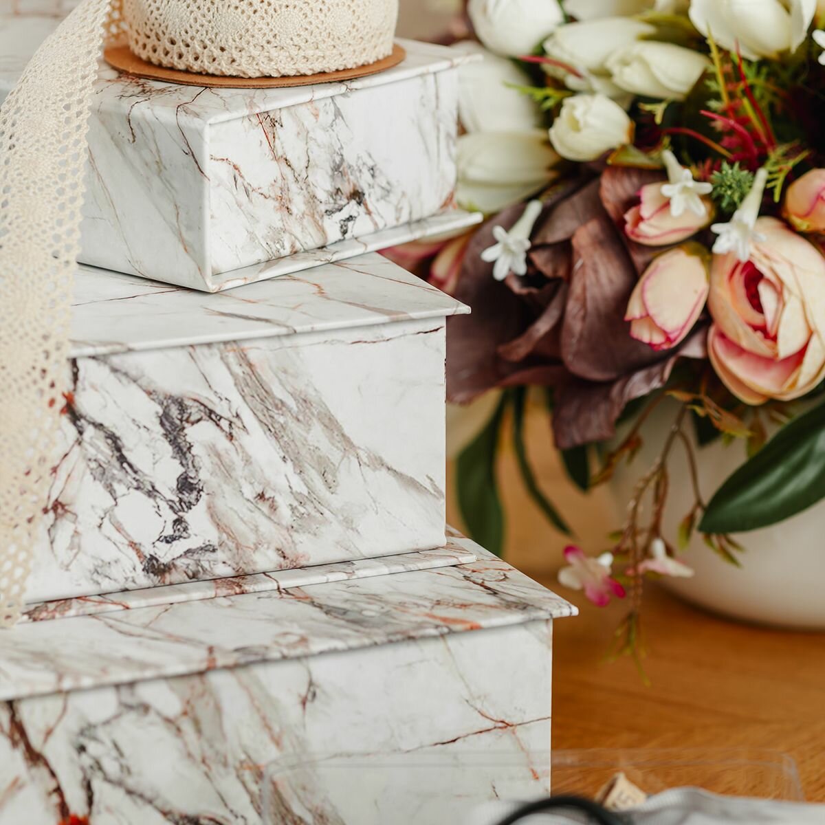 Купить Коробка для хранения украшений, мелочей и аксессуаров средняя, 205 x 145 x 75 мм. "Мрамор", белый
