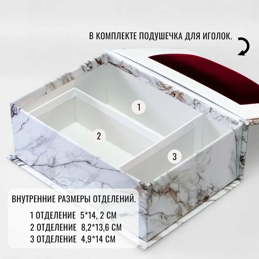 Коробка для хранения украшений, мелочей и аксессуаров средняя, 205 x 145 x 75 мм. "Мрамор", белый интересное: