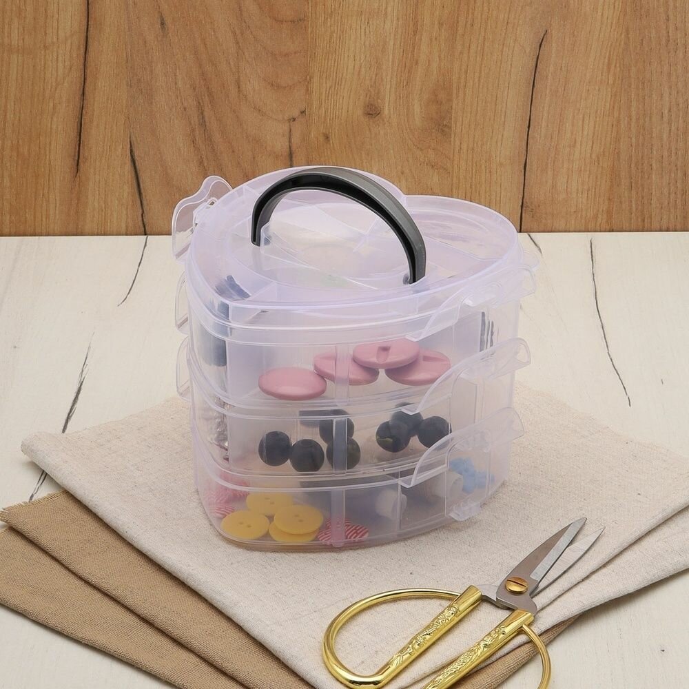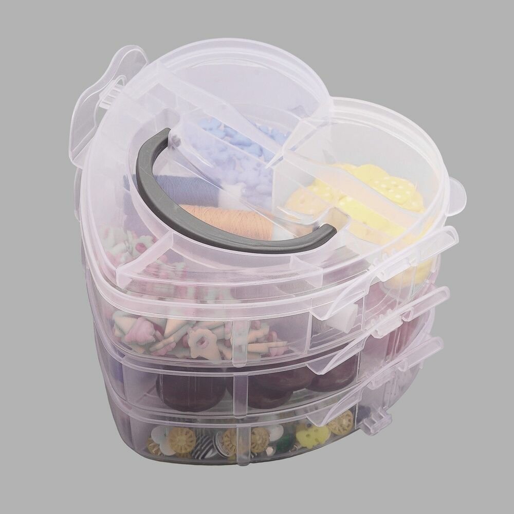 Купить Контейнер айрис для мелочей, 3-х ярусный, пластиковый, "Сердце", 15х15х12 см (23588)