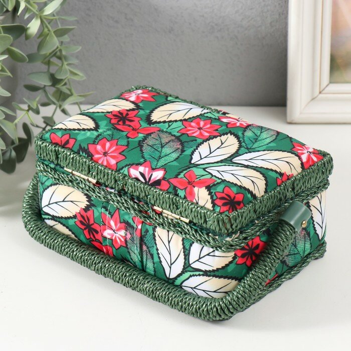 Купить Шкатулка для рукоделия и шитья «Пуансеттия на зелёном», хранение ниток, иголок, мелочи, 18×12×9.5 см