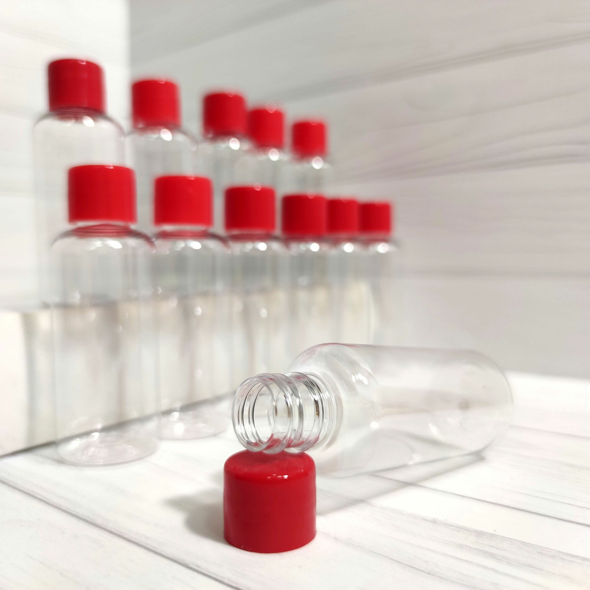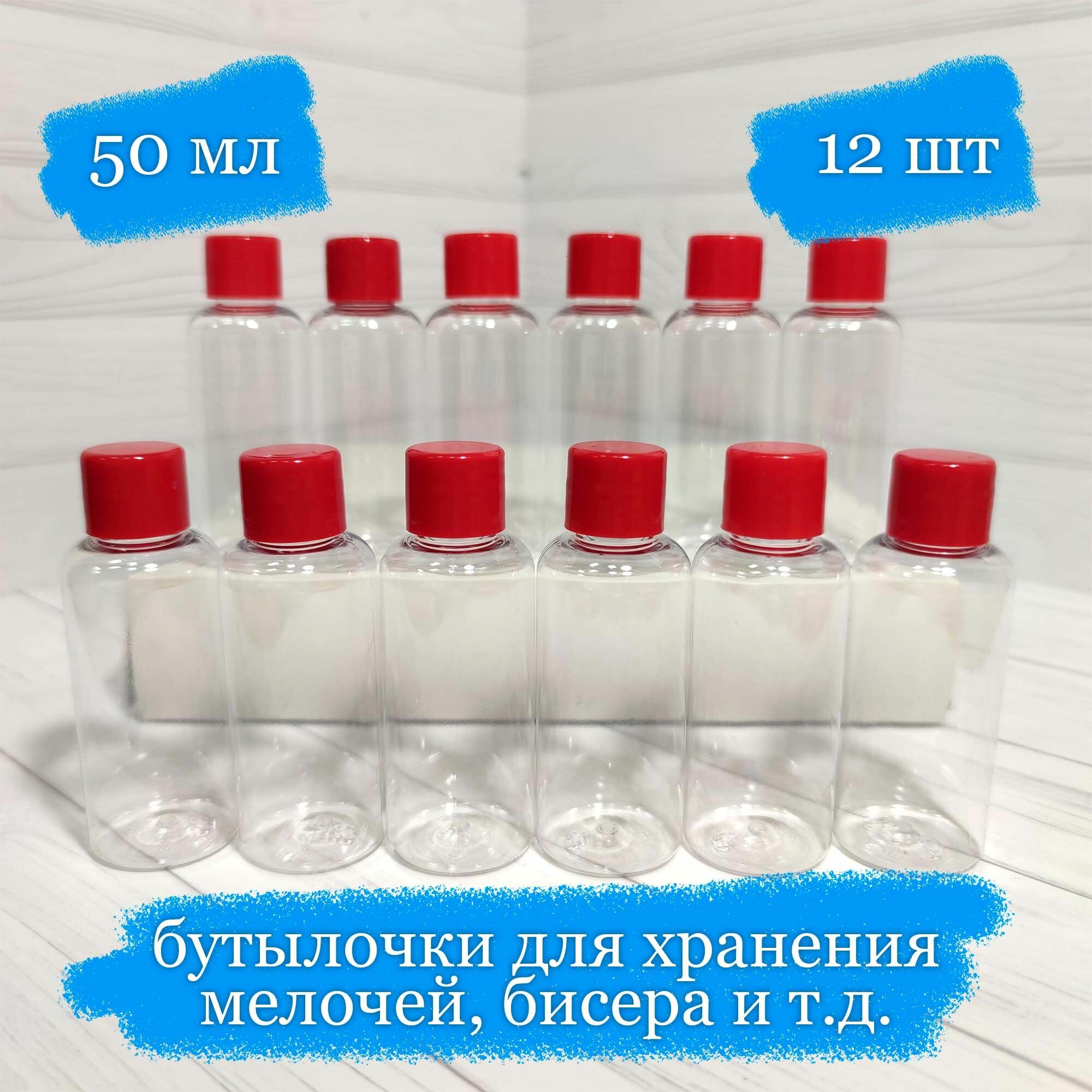Бутылочки пластиковые для хранения с красной крышкой - 50 мл - 12 шт интересное: