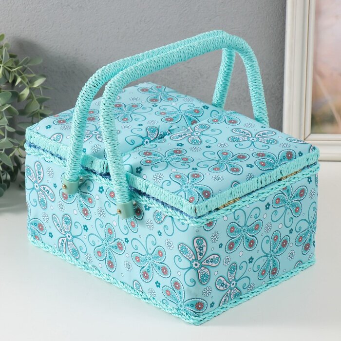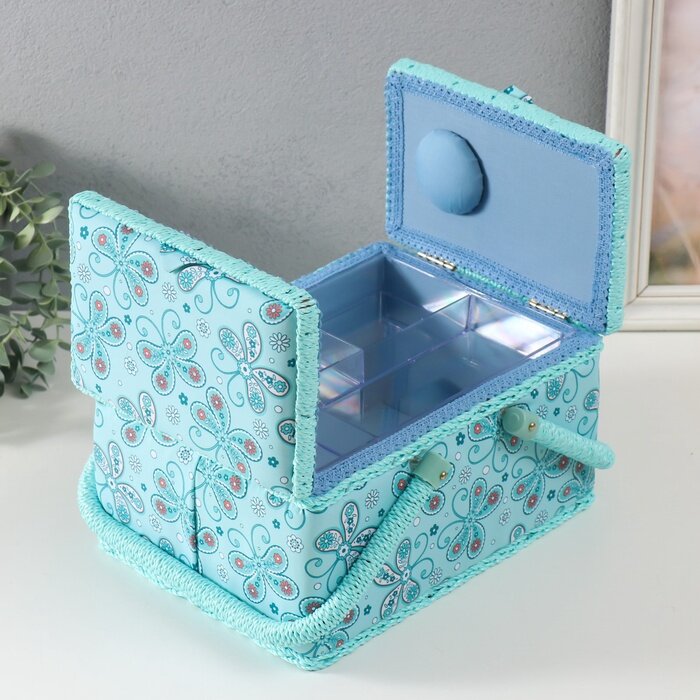 Шкатулка для рукоделия и шитья «Бабочки и цветочки на голубом», хранение ниток, иголок, мелочи, 19х26х14,5 см интересное: