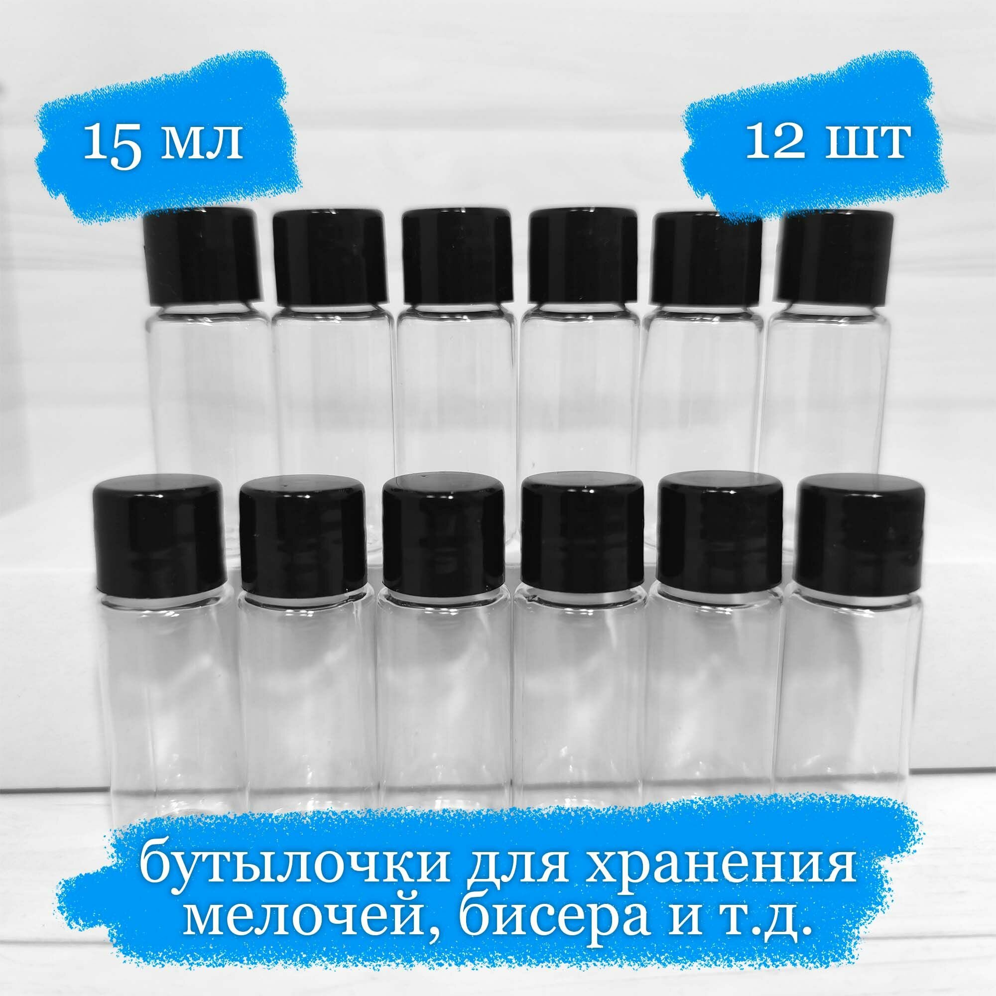Бутылочки пластиковые для хранения с чёрной крышкой - 15 мл - 12 шт интересное: