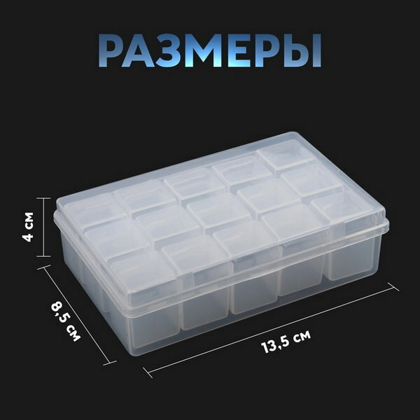 Органайзер для хранения мелочей, 15 баночек, 9 мл, 13.5x8.5x4 см, прозрачный интересное:
