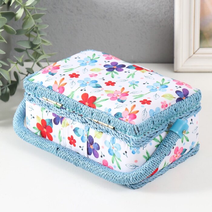 Купить Шкатулка для рукоделия и шитья «Цветение на белом», хранение ниток, иголок, мелочи, 18×12×9.5 см