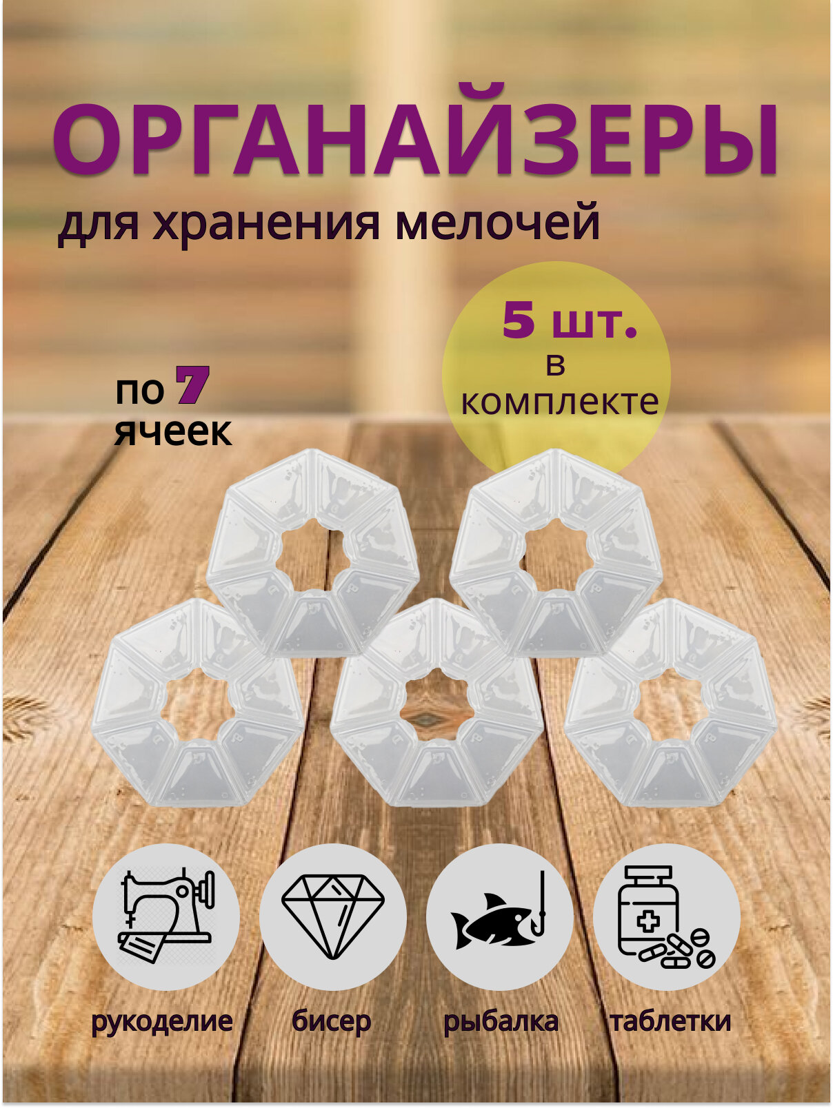 Набор органайзеров ДИМАХ "Ромашка", для рукоделия, 7 секций, пластик, 5 штук интересное: