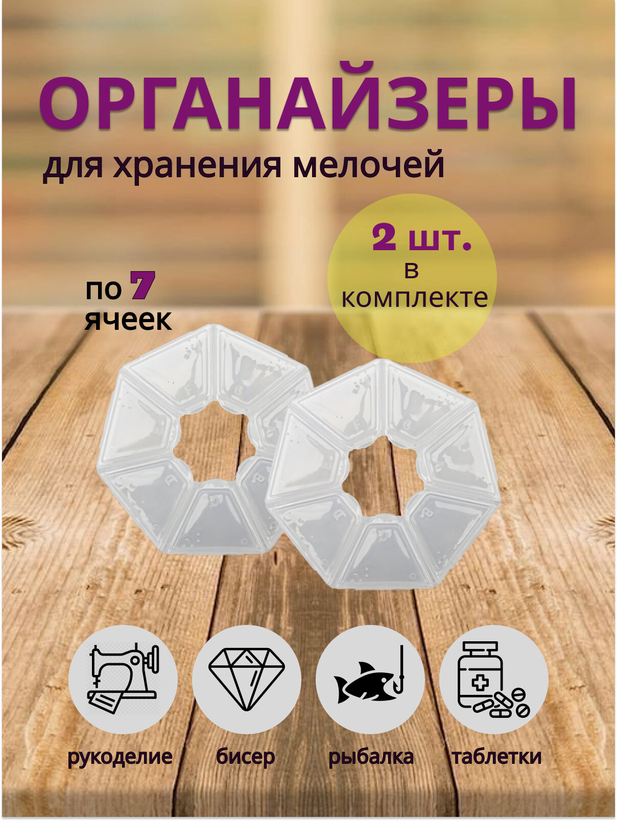 Органайзер для хранения мелочей. Ромашка 7 ячеек (2 шт.). интересное: