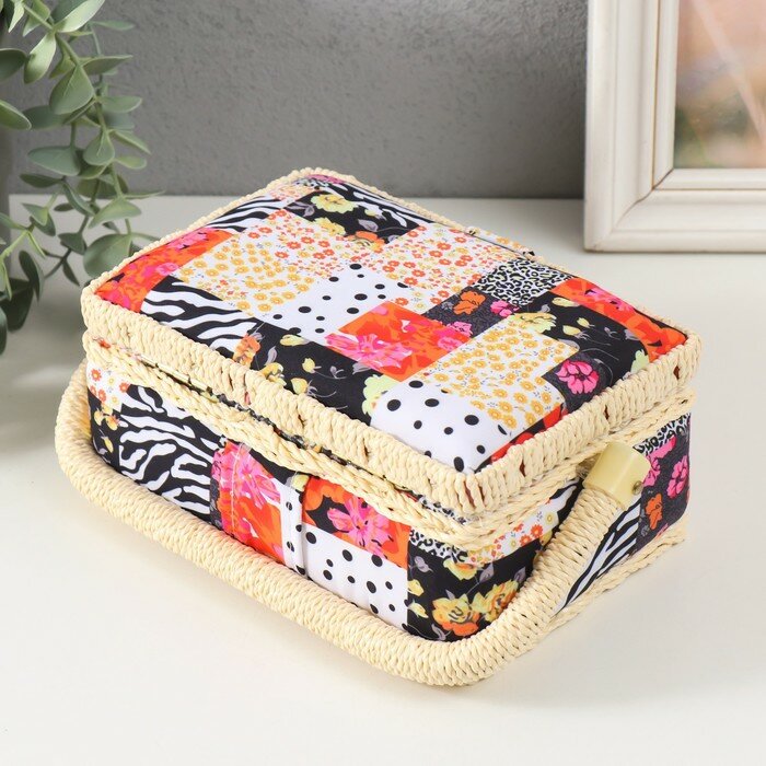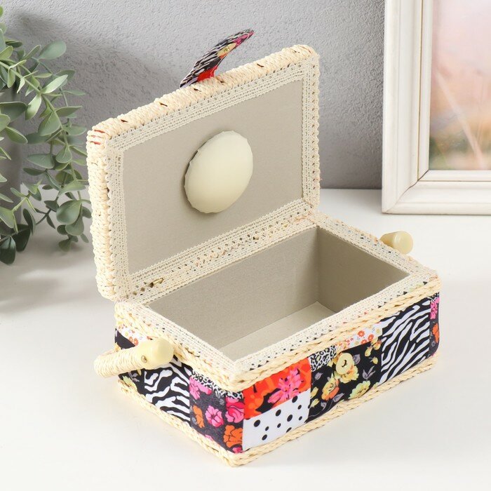 Шкатулка для рукоделия и шитья «Пэчворк. Цветы, горох и зебра», хранение ниток, иголок, мелочи, 18×12×9.5 см интересное: