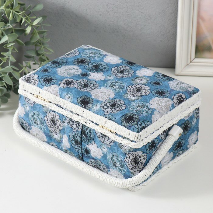 Купить 3 шт. Шкатулка для рукоделия и шитья «Чёрно-белые цветы на голубом», хранение ниток, иголок, мелочи, 24×16×11 см