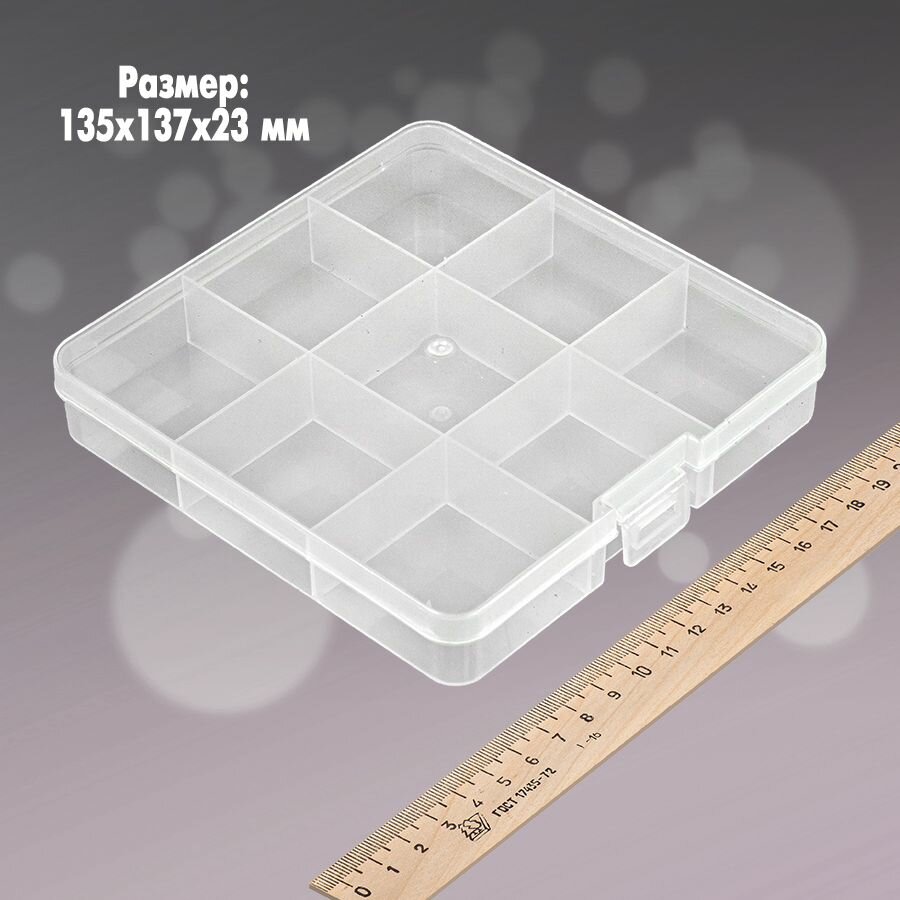 Купить Контейнер для мелочей арт. К-86 (9 ячеек) 135x137x23 мм (прозрачный) - 4 шт