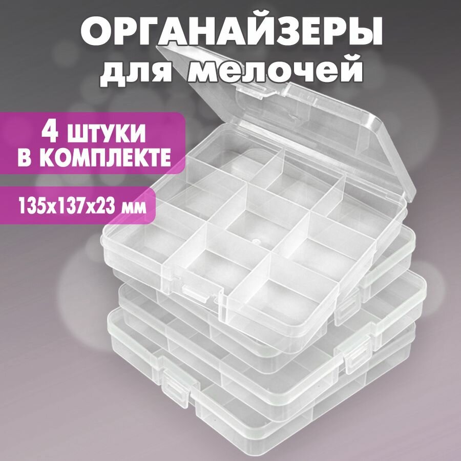 Контейнер для мелочей арт. К-86 (9 ячеек) 135x137x23 мм (прозрачный) - 4 шт интересное: