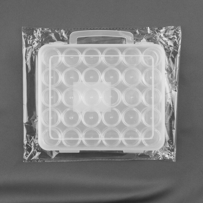 Купить Набор баночек для рукоделия, 30 шт, d = 2,5 × 2,9 см, в контейнере с ручкой, 16,2 × 13,6 × 3,4 см, цвет прозрачный