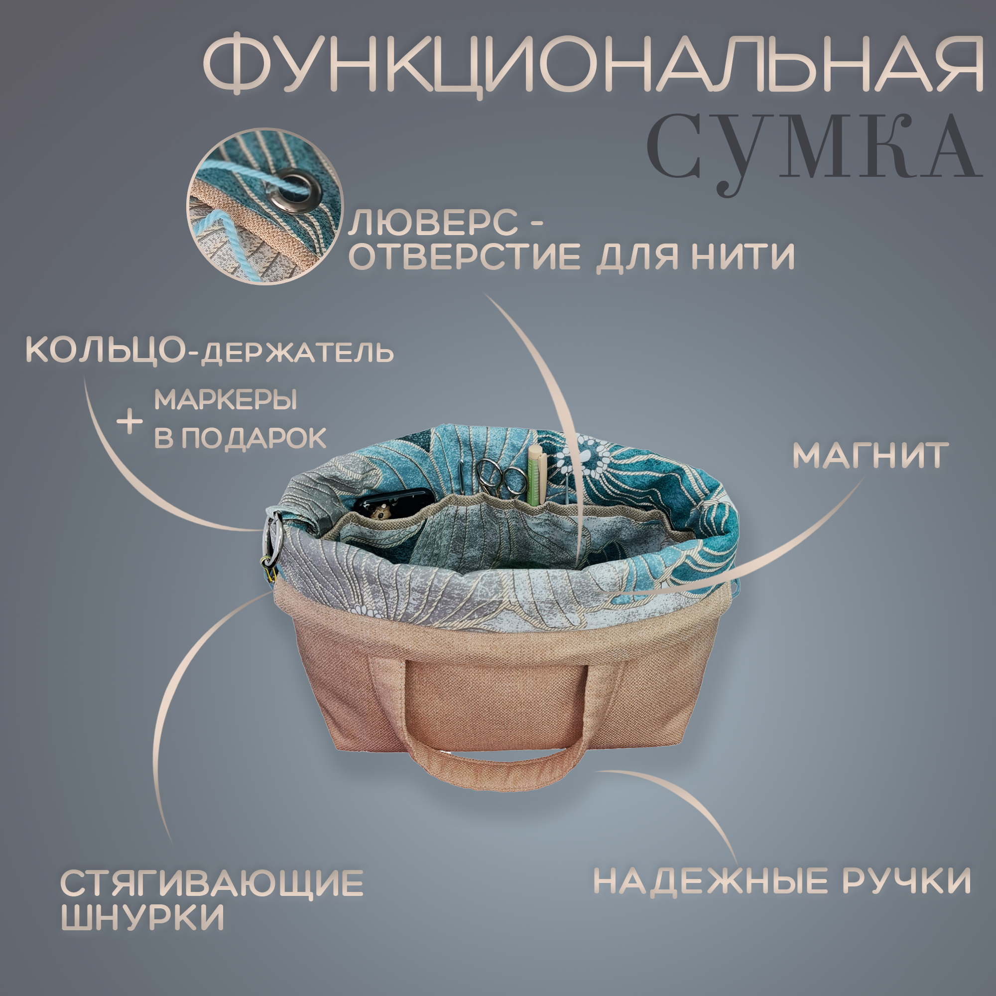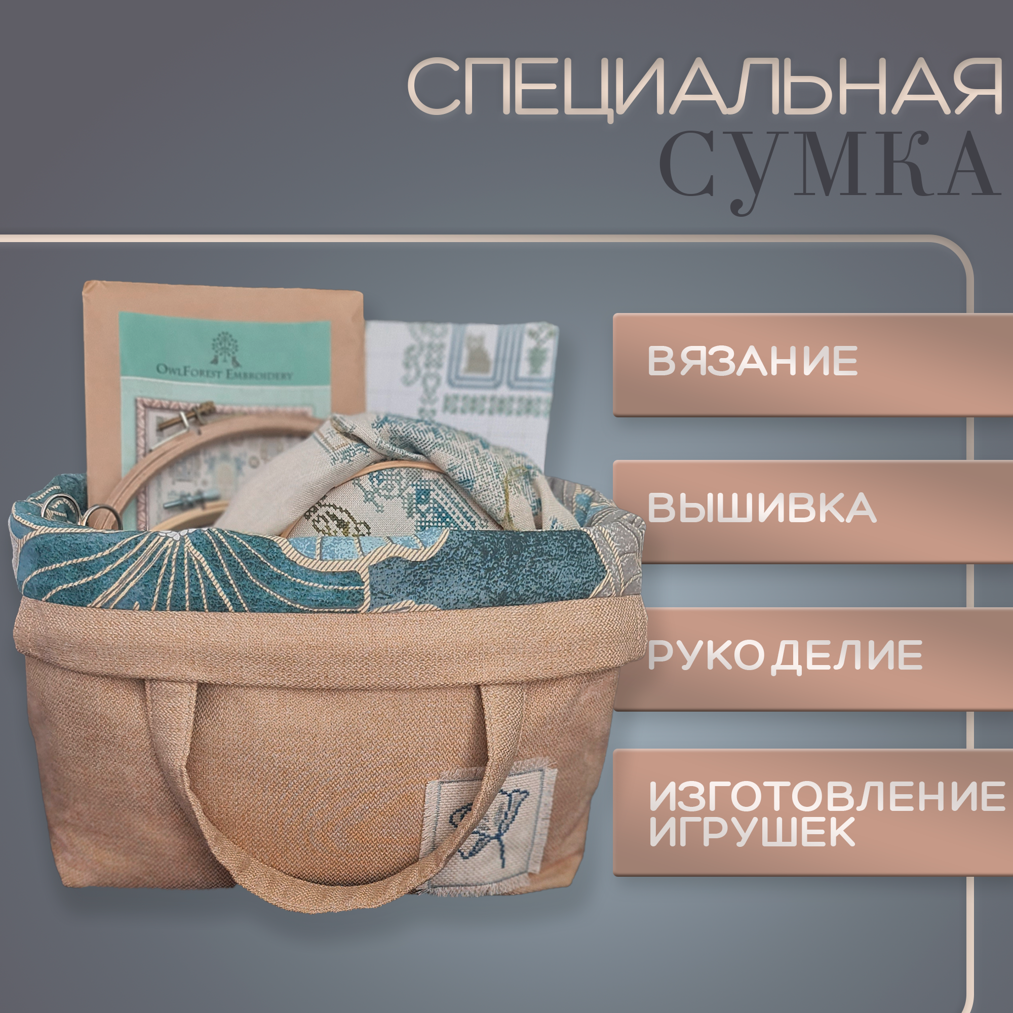СохранитьНабор: проектная сумка для вязания (41 х h28,5, дно14,5 x 27 см), органайзер для спиц и крючков, клубочница интересное: