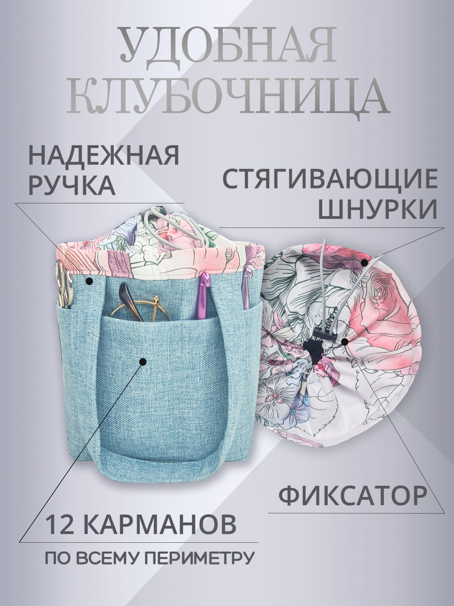 СохранитьСумка для вязания, клубочница, органайзер для рукоделия , набор 3 предмета, голубой интересное: