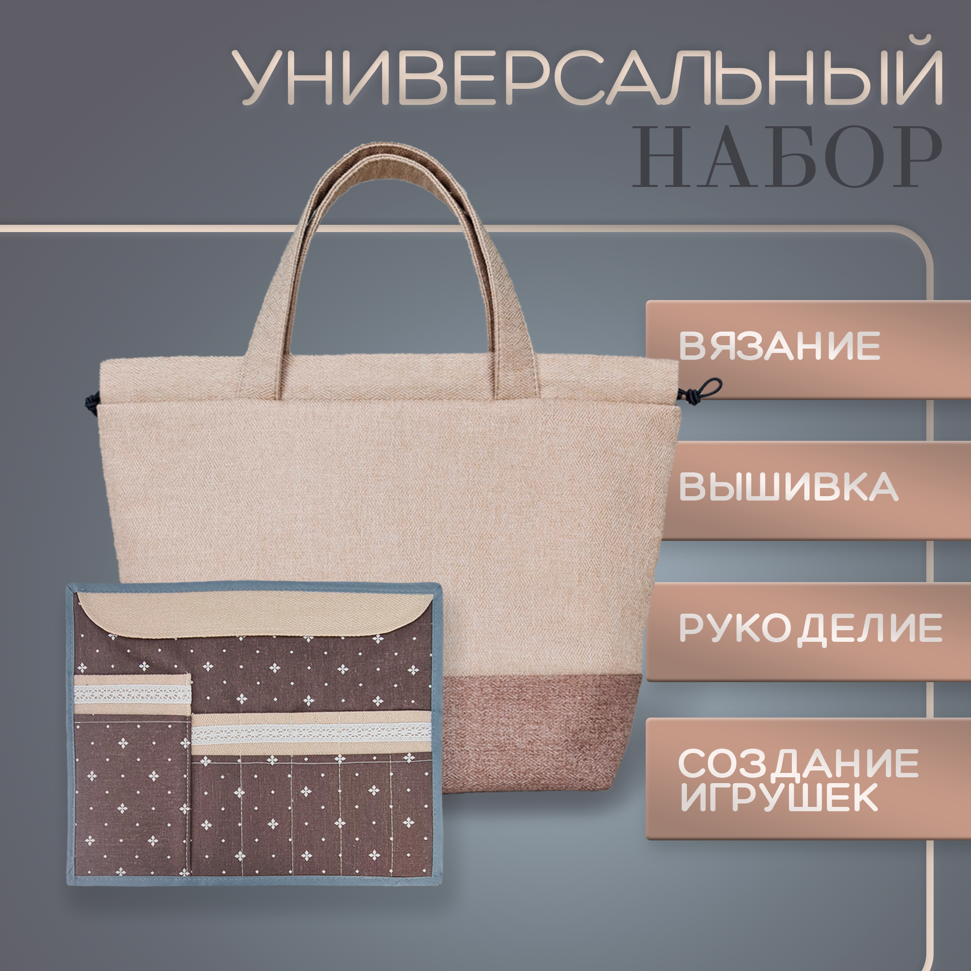 Купить Набор: проектная сумка для вязания (41 х h28,5, дно14,5 x 27 см), органайзер для спиц и крючков (24 см х 29 см) бежевый