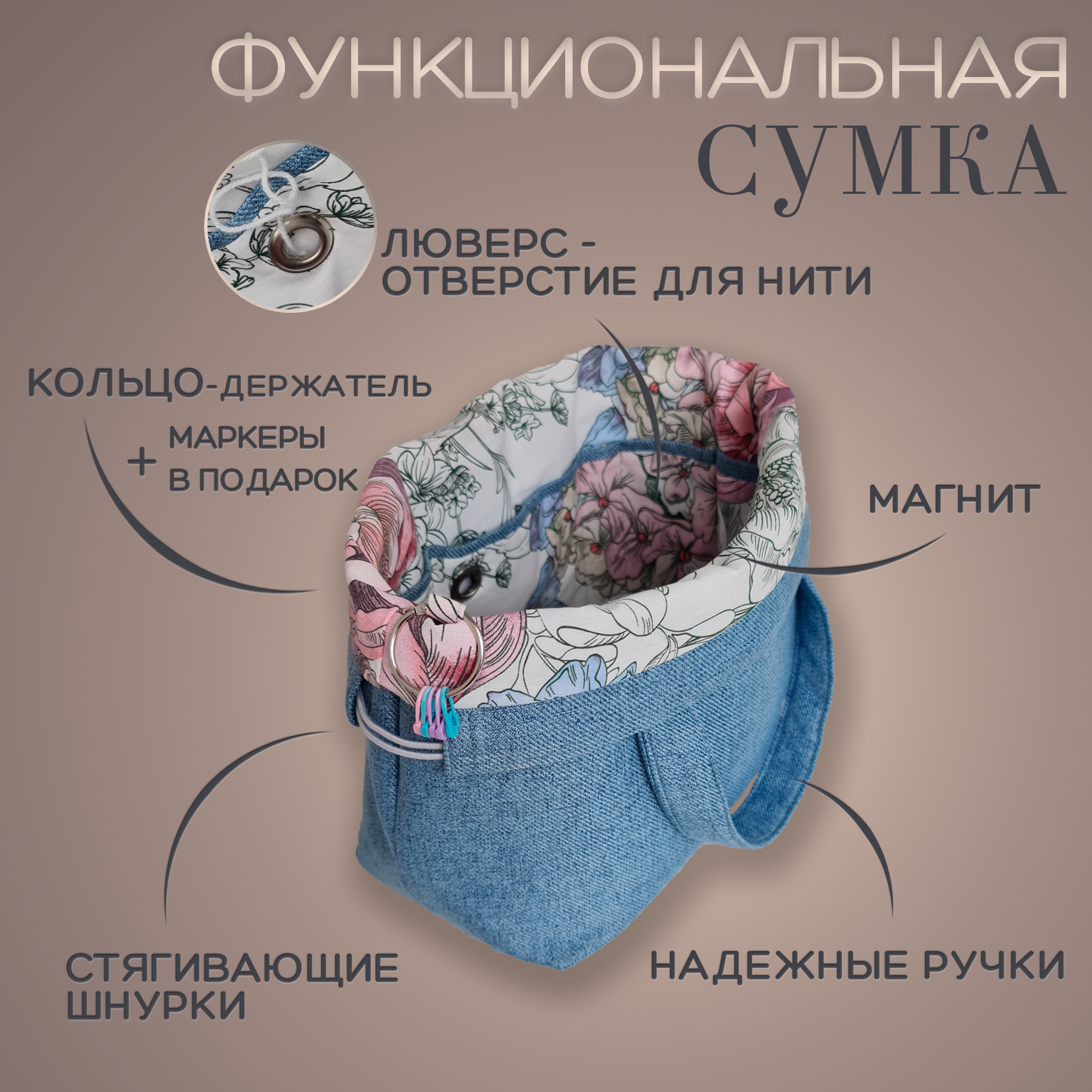 СохранитьНабор: проектная сумка для вязания (41 х h28,5, дно14,5 x 27 см), органайзер для спиц и крючков (24 см х 29 см) синий интересное: