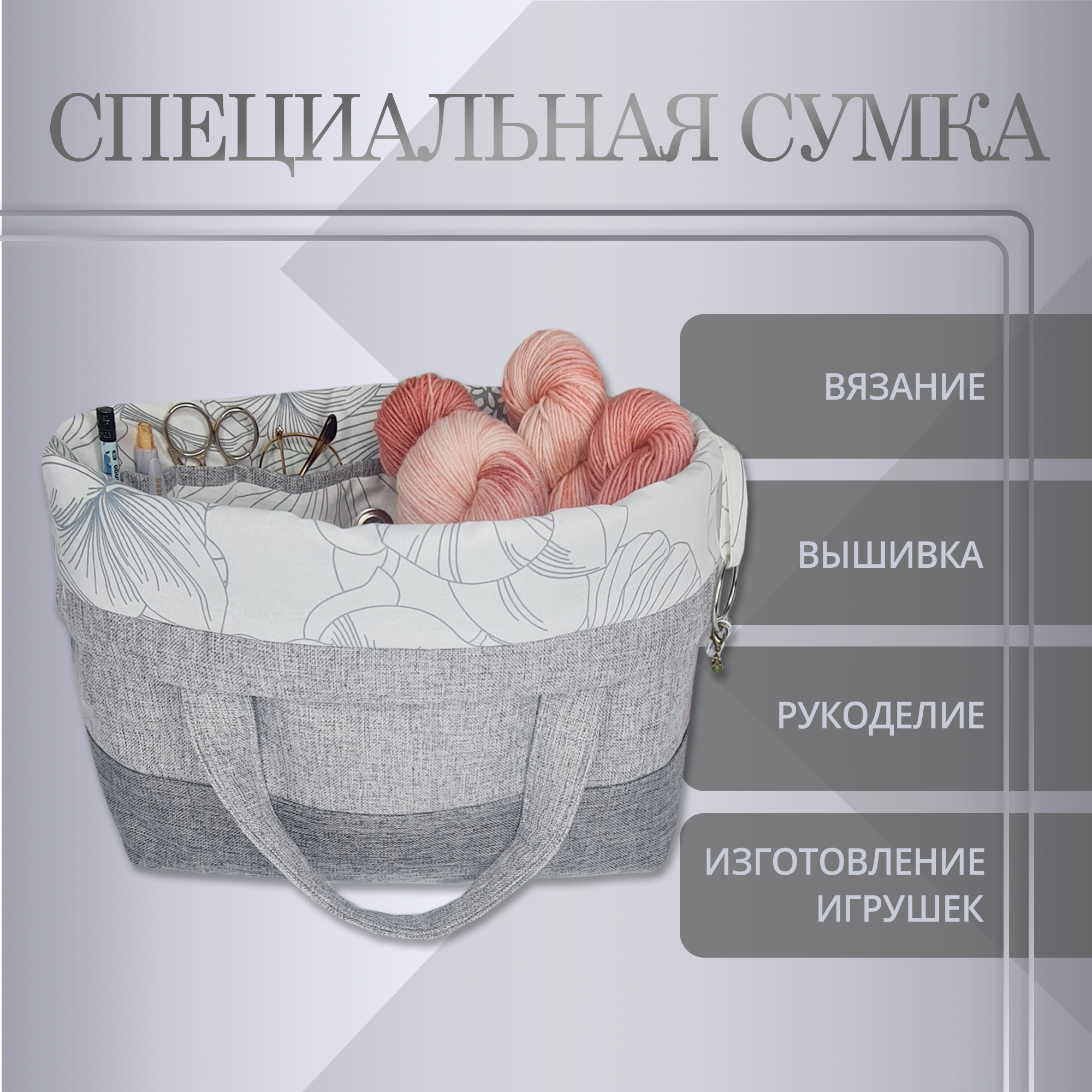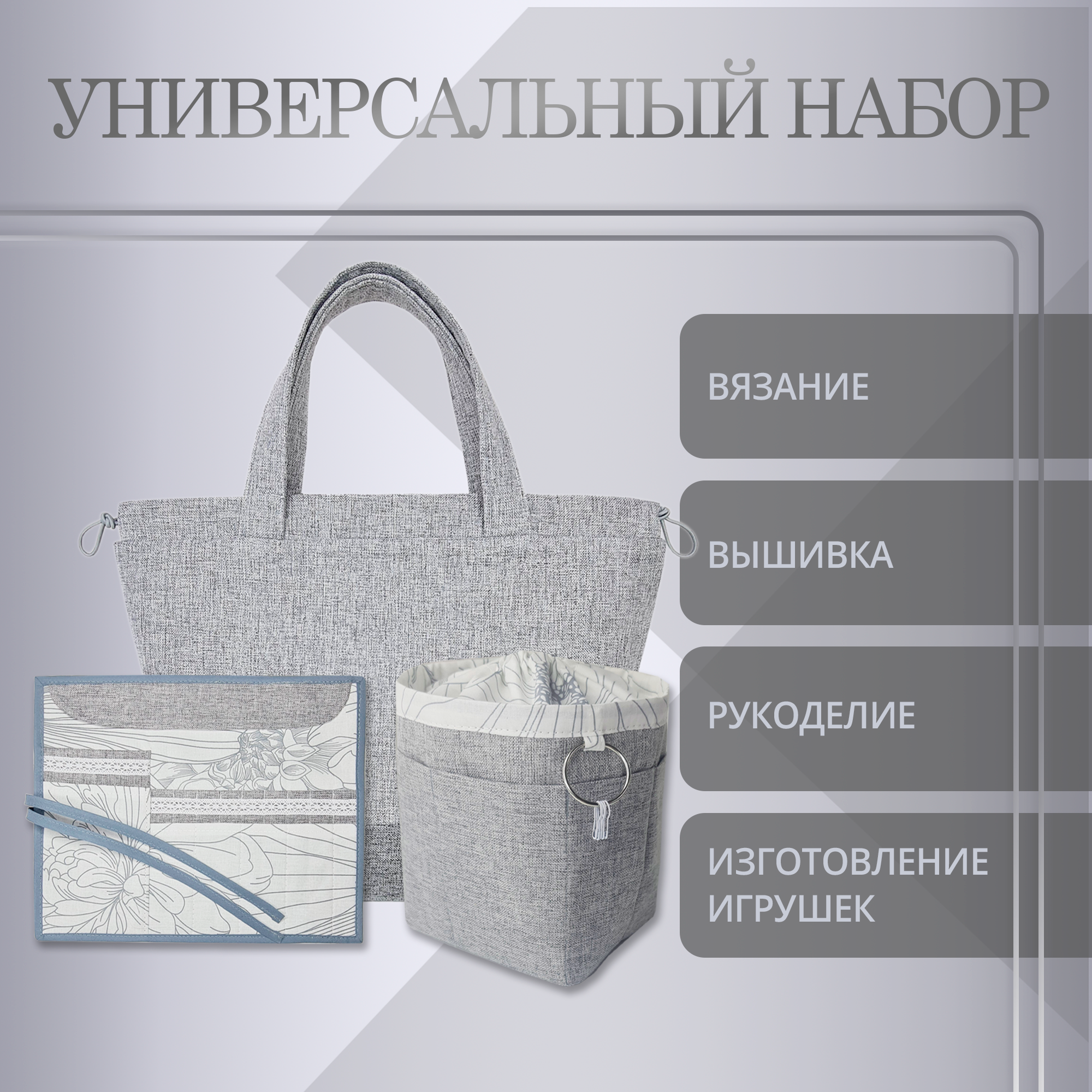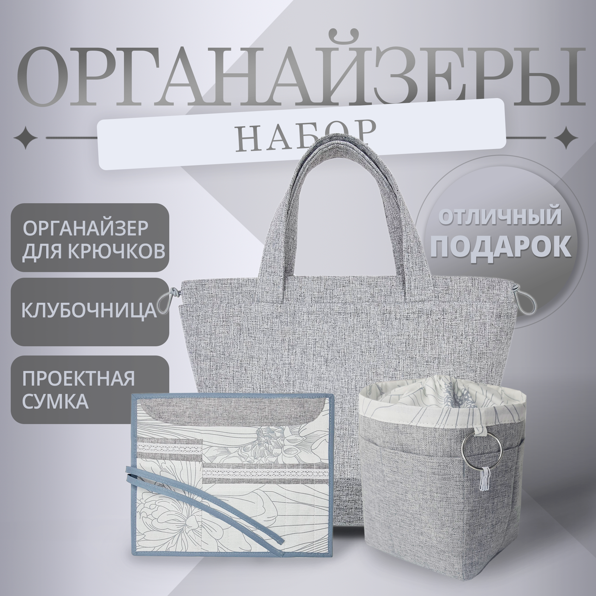 Купить Сумка для вязания, клубочница, органайзер для рукоделия , набор 3 предмета, серый