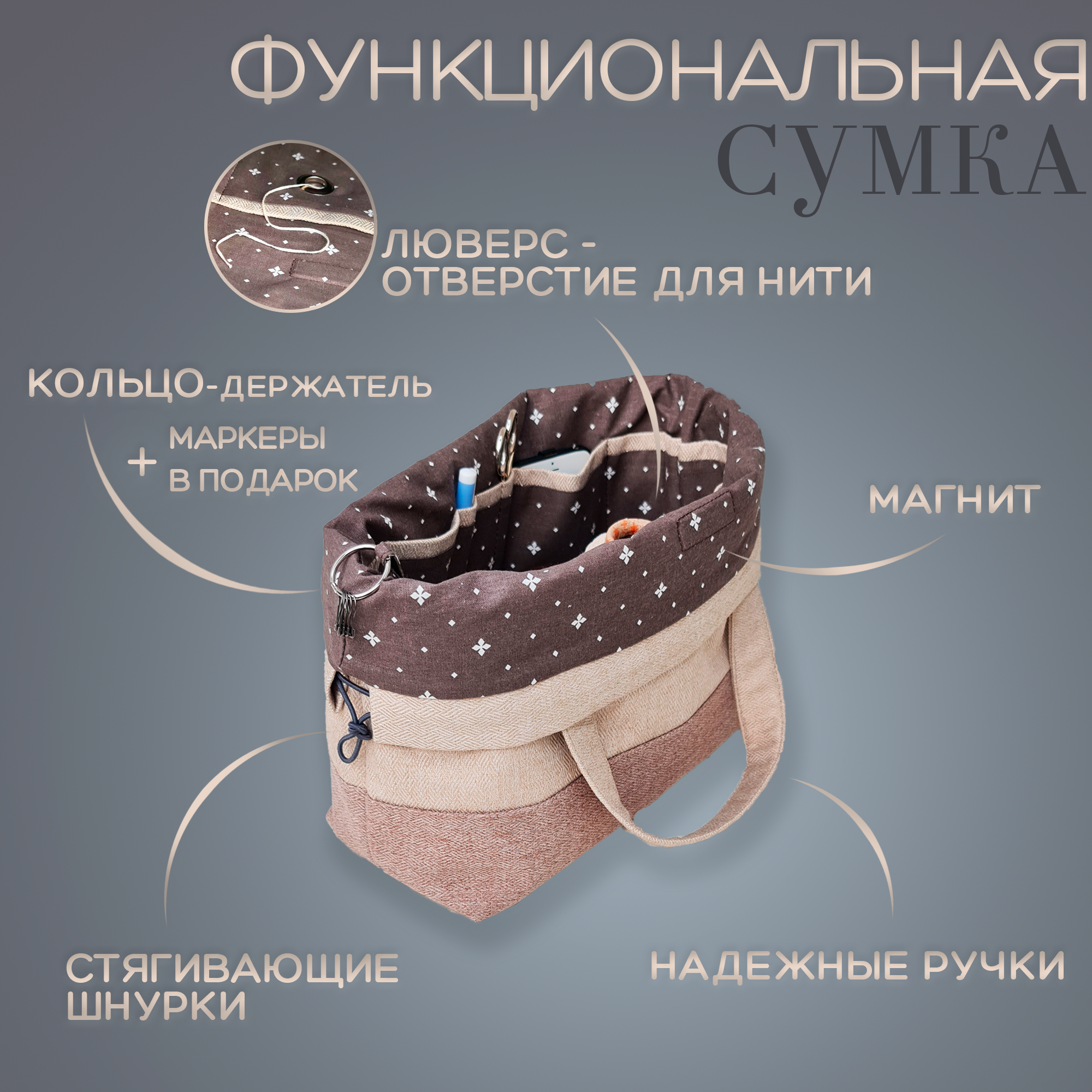 Набор: проектная сумка для вязания (41хh28,5, дно14,5x27 см), органайзер для спиц и крючков, клубочница (14.5х14.5хh17)