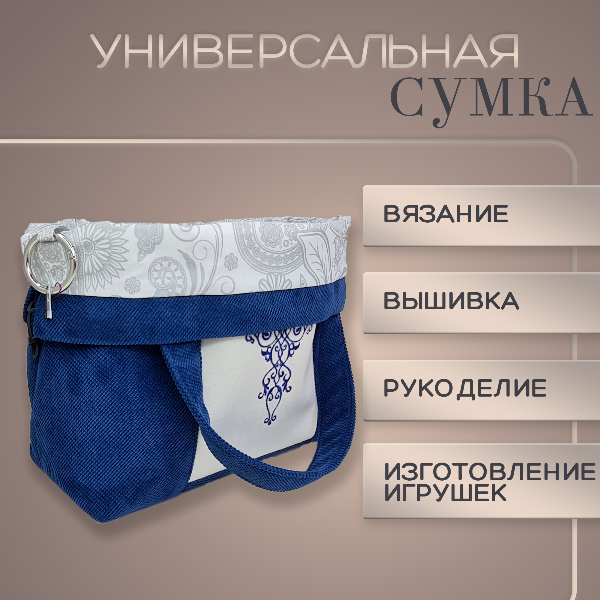 Набор: проектная сумка для вязания (41хh28,5, дно14,5x27 см), органайзер для спиц и крючков, клубочница (14.5х14.5хh17)