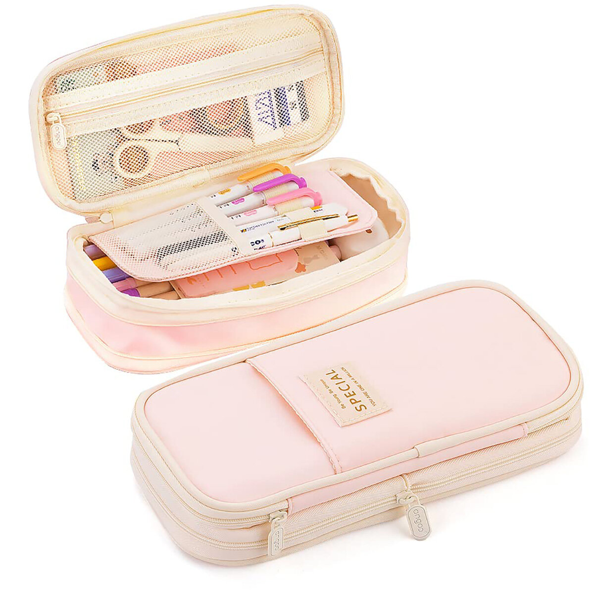 Купить Пенал школьный, органайзер для канцелярии, расширяемый размер, цвет светло-розовый
